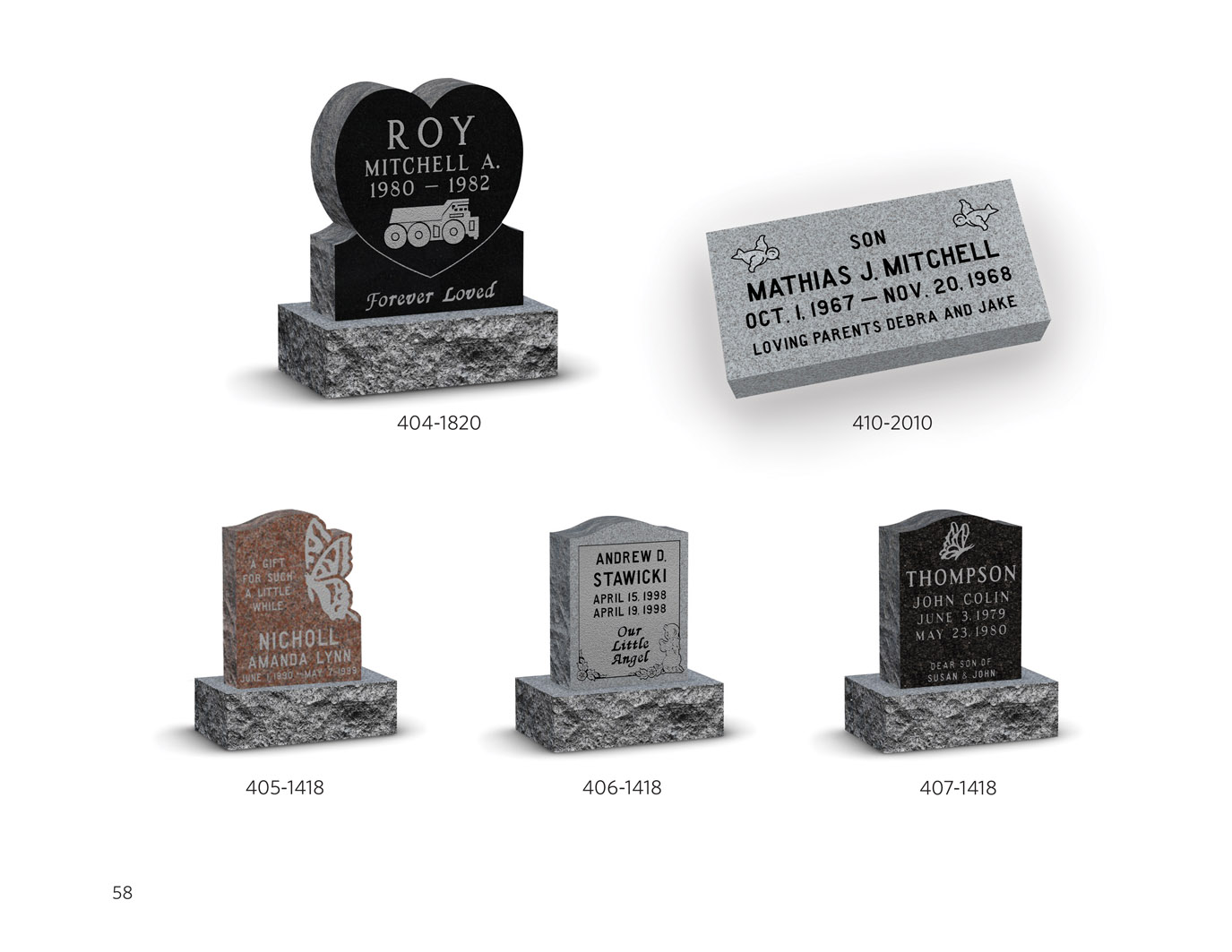 designs of what is available. Most designs are interchangeable between monument sizes and shapes.